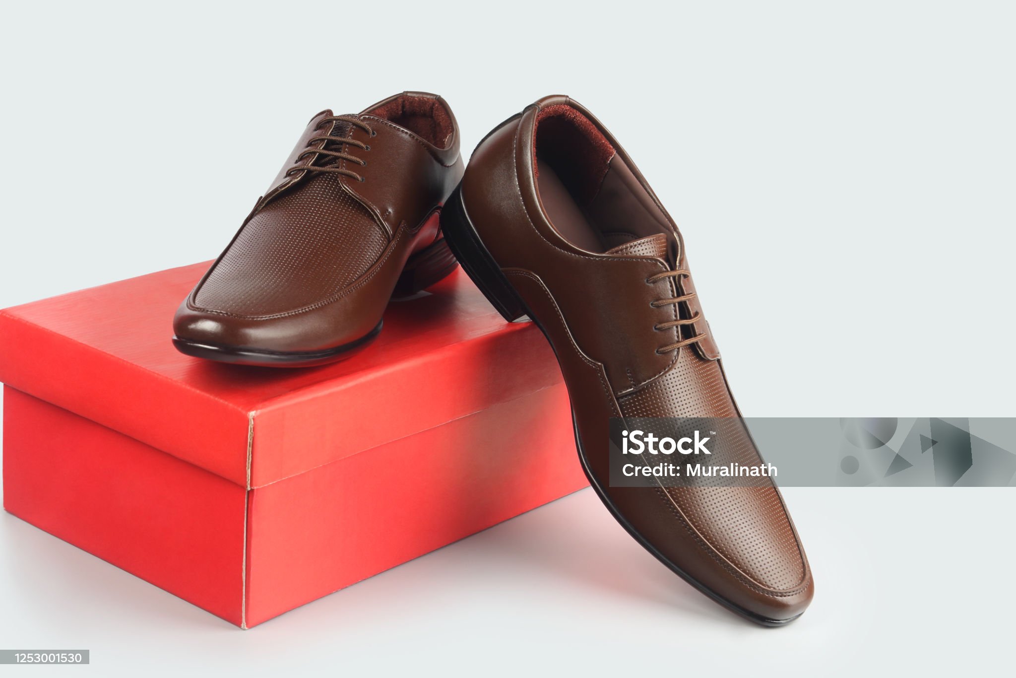 indian made men's leather shoes with box stock photo...Indian Made Men’s Leather Shoes